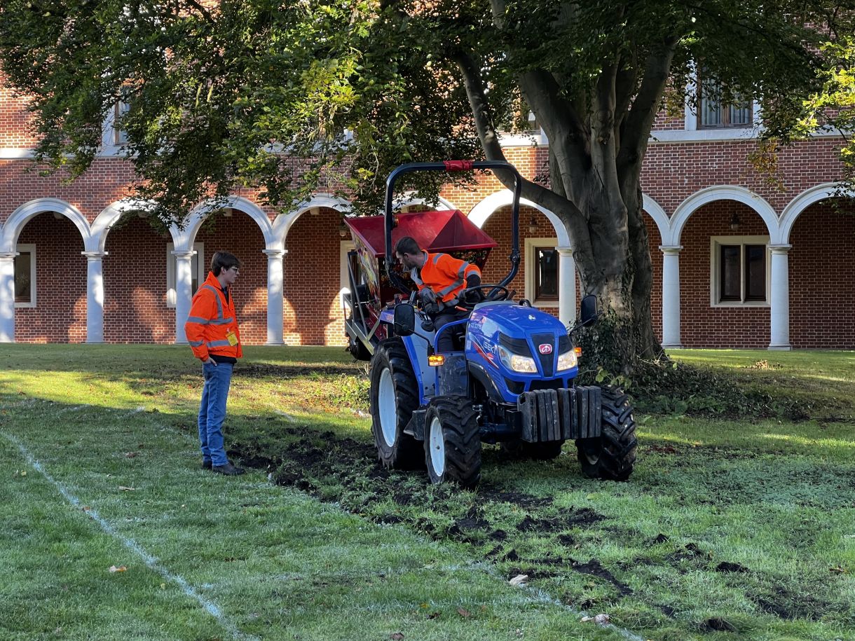 Specialist contractors used a machine that lifted a one metre strip, scattered bulbs beneath it, and re-laid it in a single continuous pass.